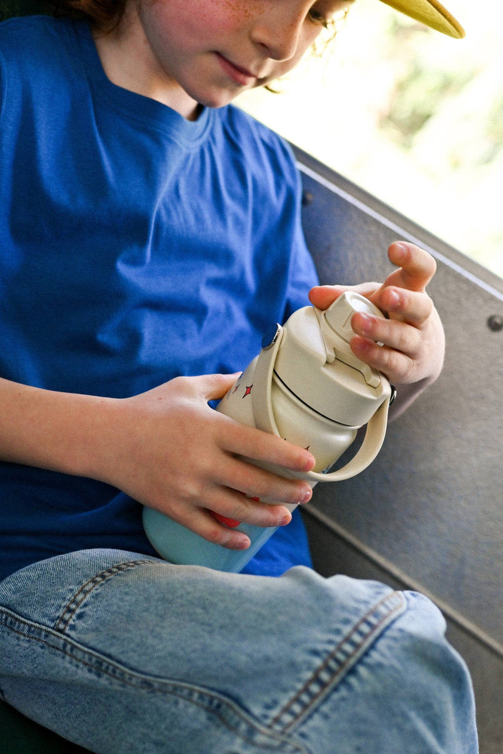 Perfekt für wachsende Kinder! Der neuer Stahlflaschenverschluss kommt mit einer offenen Tülle—kein Strohhalm, nur einfaches Schlürfen. Einfach, langlebig und bereit, überallhin mitzugehen!