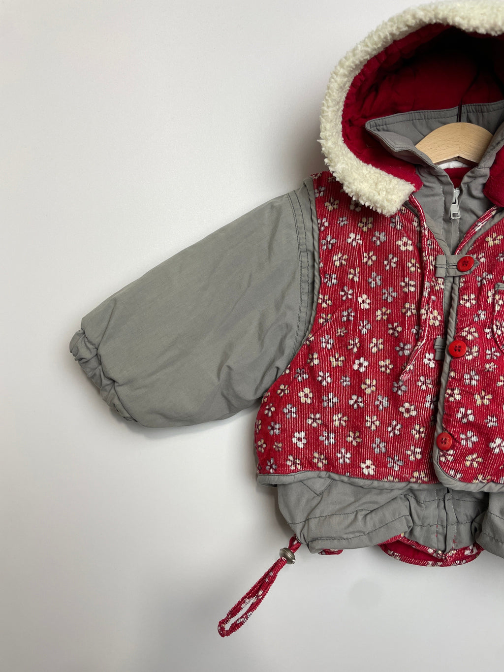 Kapuze und Weste lassen sich abknöpfen.