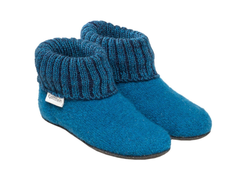 Mit den Gottstein Kinder Hüttenschuhen bleiben kleine Füße auch an kalten Tagen angenehm warm. Die hochwertigen Hausschuhe aus 100 % Schurwollwalk schaffen ein natürlich ausgeglichenes Fußklima: Sie halten zuverlässig warm, sind atmungsaktiv und leiten überschüssige Feuchtigkeit nach außen ab.
