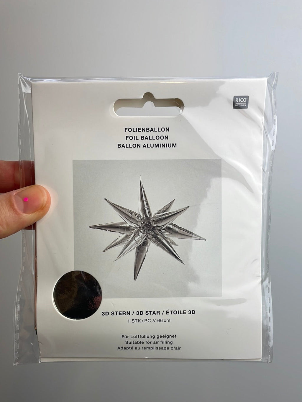 Der effektvolle Sternen-Folienballon im 3D-Format bereitet sowohl Kindern als auch Erwachsenen eine Freude! Der Folienballon wird mit Luft befüllt und kann mehrfach verwendet werden. Super effektvoll kommt der Folienballon zu Geltung, wenn er freischwebend von der Decke hängt. Der 3D-Stern entsteht durch einfaches Zusammenknoten von 12 glänzenden Ballon-Zacken. Auf der Innenseite der Verpackung ist eine entsprechende Anleitung mit Step-Fotos abgedruckt.