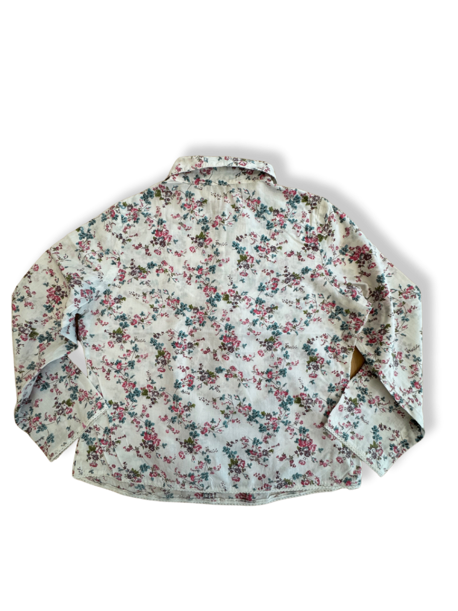Diese wunderschöne weiße Bluse von Benetton mit floralem Muster in Rosa, Blau und Grün ist ein echtes Unikat. Die perfekte Wahl für alle, die Wert auf Individualität legen!