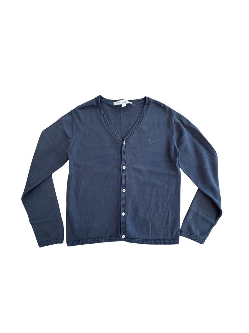 Dieser dunkelblaue Cardigan von Bonpoint in Größe 140 ist aus hochwertiger, weicher Baumwolle gefertigt und sorgt für angenehmen Tragekomfort. Das zeitlose Design mit V-Ausschnitt passt perfekt zu jedem Outfit. Dein Kind wird sich in diesem schicken Cardigan pudelwohl fühlen. Hol dir jetzt dieses tolle Stück für deinen Liebling!