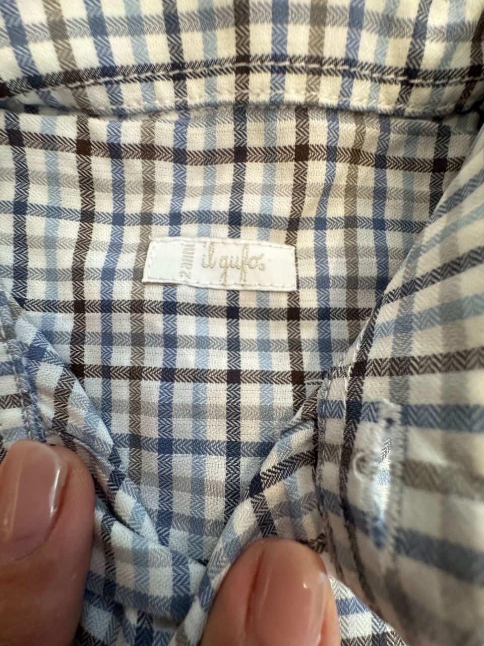 Dieses entzückende karierte Hemd der Marke il gufo in den Farben braun, weiß und hellblau ist ein echtes Unikat für dein Kleinkind. Setze ein Statement für bewussten Konsum und style dein Mini-Me in diesem besonderen Piece! #secondhandfashion #naturalliving #consciouscloset