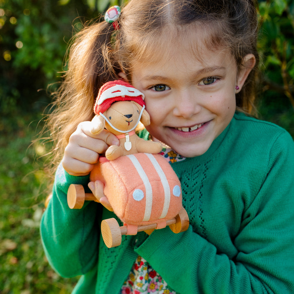 Begeistere dein Kind mit dem OLLI & ELLA HOLDIE DOG-GO "RACER GIRL", einem außergewöhnlichen Spielzeug, das Fantasie und Kreativität anregt. Diese charmante Hündin fährt mit Stil und verleiht dem Begriff "Hot Dog" eine neue Dimension.