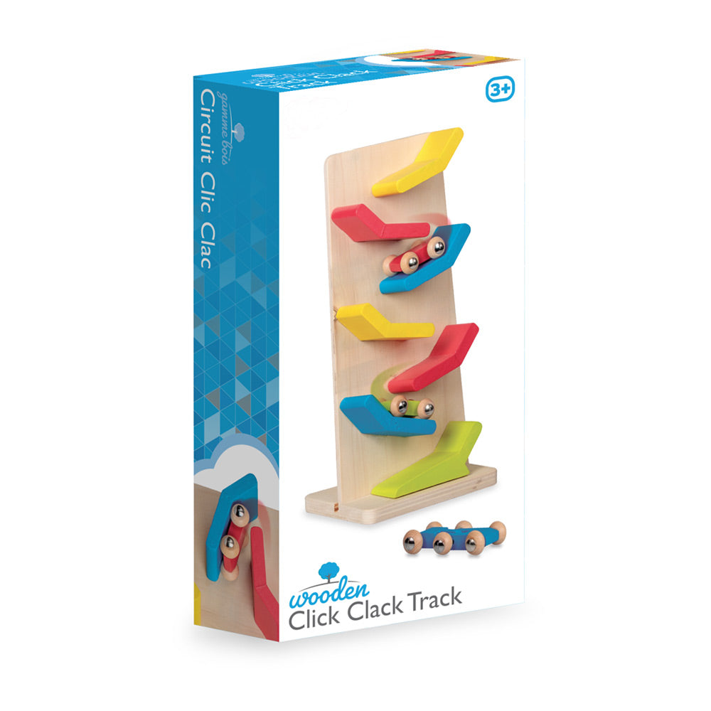 Dieses farbenfrohe Holzspielzeug fördert spielerisch die Hand-Auge-Koordination, Feinmotorik und das Verständnis für Bewegung. Durch die robuste Verarbeitung ist die Click Clack Track besonders langlebig und ideal für stundenlangen Spielspaß.