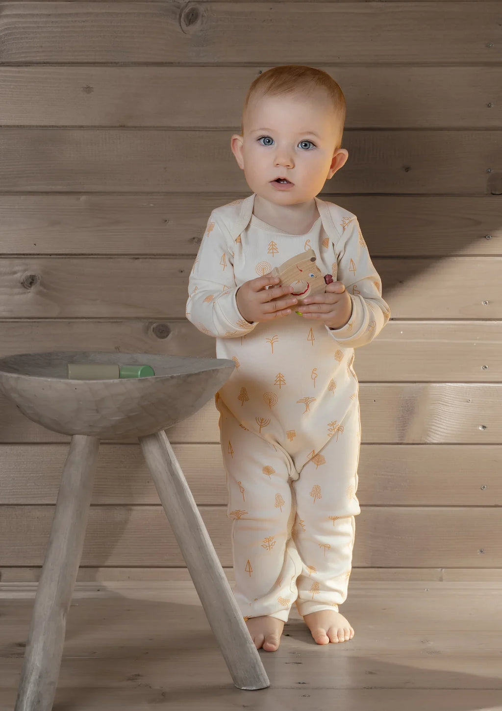 Mit Umschlagkragen, Manschetten aus weichem Interlock und Druckknöpfen an der Innenseite der Beine für einfaches Windelwechseln und Anziehen. Ohne Füße, ideal für aktive Babys ab 3 Monaten. Sorgfältig entworfen, naturverbunden, praktisch und bequem.