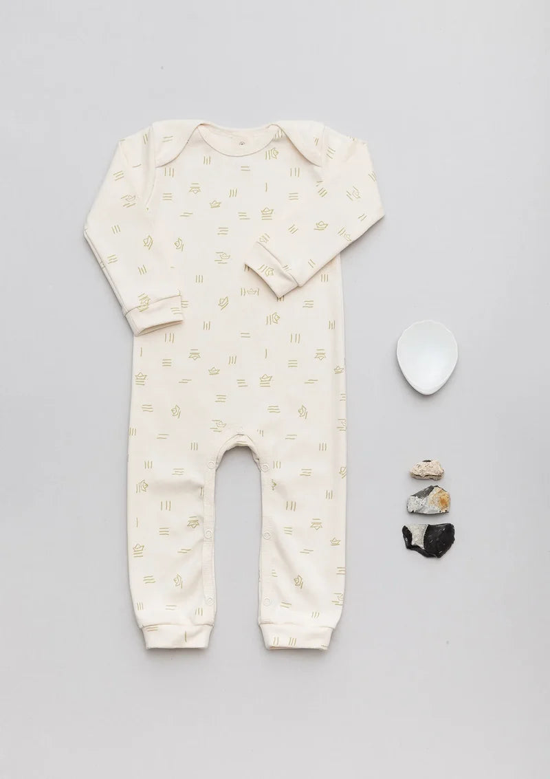 Mit Umschlagkragen, Manschetten aus weichem Interlock und Druckknöpfen an der Innenseite der Beine für einfaches Windelwechseln und Anziehen. Ohne Füße, ideal für aktive Babys ab 3 Monaten. Sorgfältig entworfen, naturverbunden, praktisch und bequem.