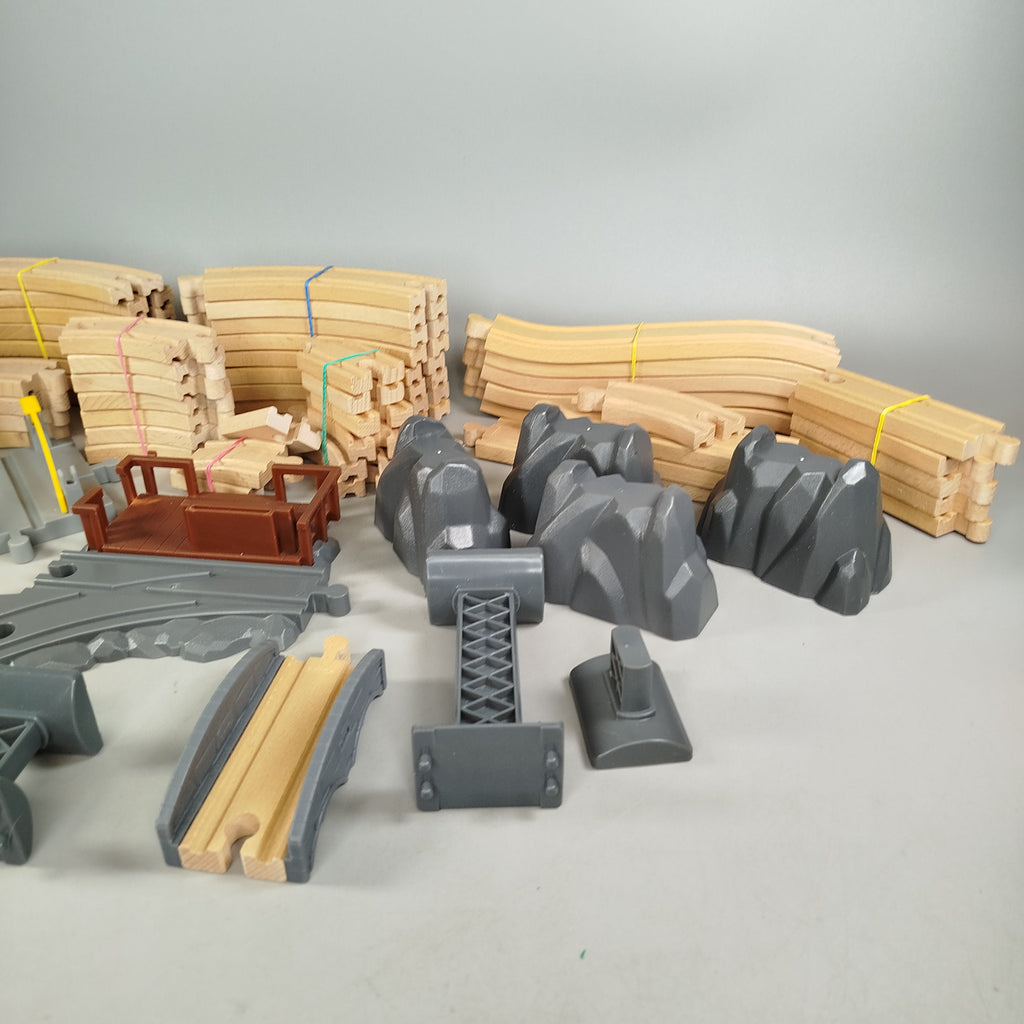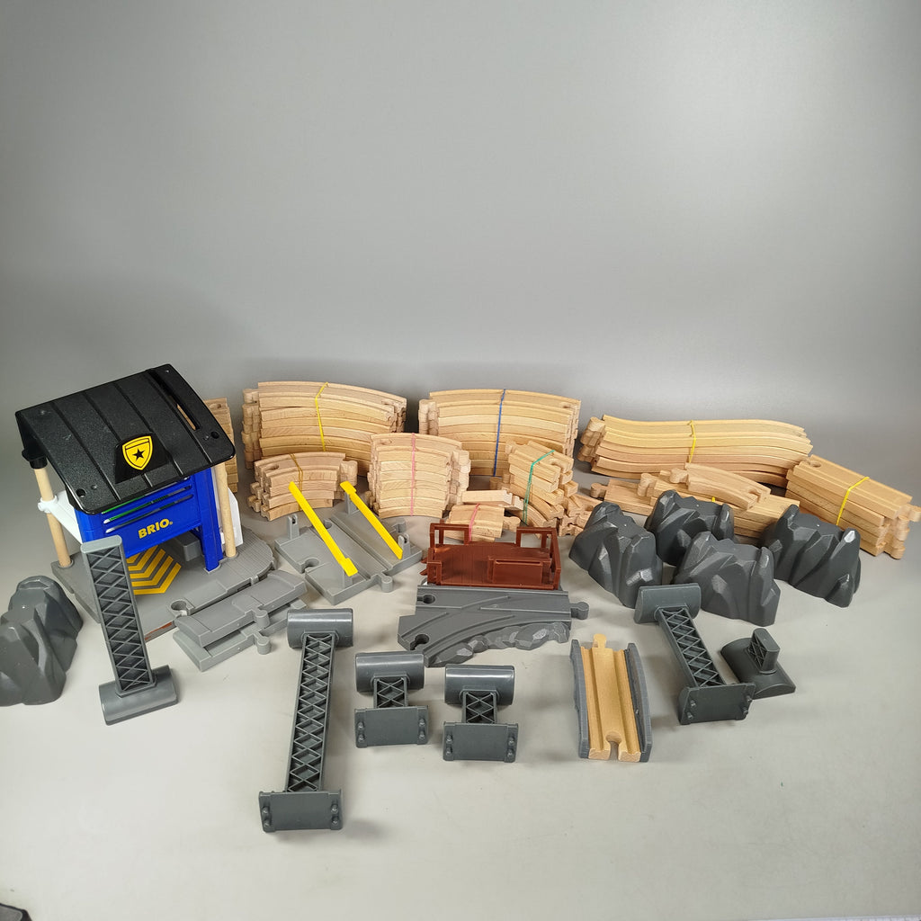 Hol dir das Brio Holzeisenbahn Zubehörset mit Holzschienen, grauen Brückenpfeilern und Felsformationen für spannende Streckenverläufe. Ideal zum Erweitern bestehender Brio Sets und für kreative Bahnabenteuer. Die OVP fehlt, das Spielzeug weist nur leichte Gebrauchsspuren auf. Die Vollständigkeit konnte nicht überprüft werden. Sicherheitshinweis: Nicht für Kinder unter 3 Jahren geeignet – Erstickungsgefahr durch Kleinteile.