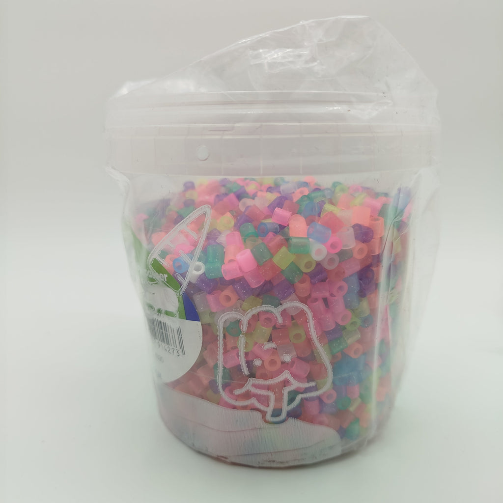 Dieses umfangreiche Bügelperlen-Set enthält eine große Menge an bunten Perlen sowie mehrere Steckplatten in verschiedenen Formen (Quadrat, Herz, Stern, Sechseck, Kreis). Ein weiteres Set ist noch originalverpackt mit Anleitung zwei Bilder. Perfekt für kreative Bastelprojekte, bei denen Kinder ihre eigenen Motive erstellen und durch Bügeln fixieren können.