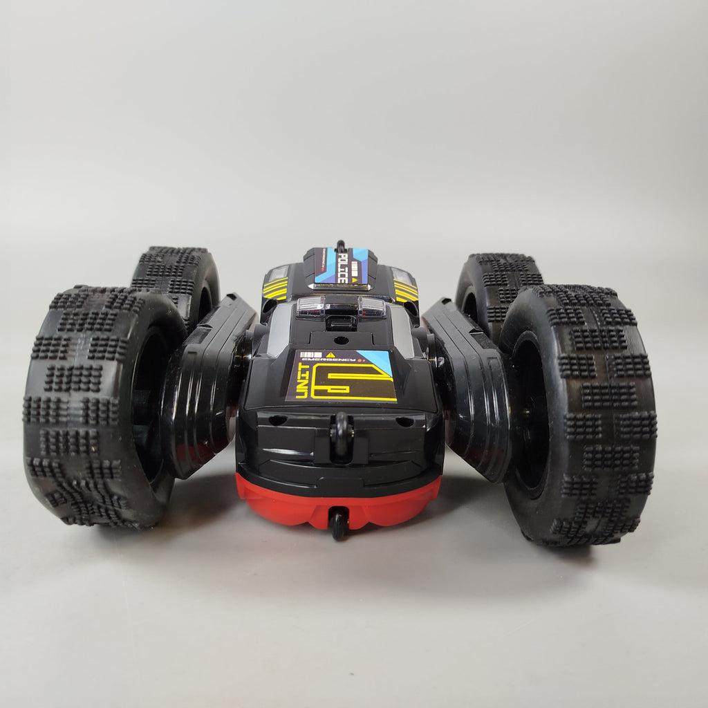 Hol dir das ferngesteuerte Stuntauto von Dickie Toys mit doppelseitigem Design. Eine Seite zeigt das auffällige rote Rage-Motiv mit Stickern, die andere Seite ist im Polizei-Stil gestaltet. Mit seinen großen Reifen meistert das Fahrzeug unterschiedliche Untergründe. Das Auto zeigt leichte Gebrauchsspuren, die Originalverpackung fehlt und die Fernbedienung ist nicht enthalten, daher ist die Vollständigkeit eingeschränkt. Gib diesem robusten Fahrzeug ein zweites Zuhause und erfreue dich an seinem besonderen Design. Hinweis: Nicht für Kinder unter 3 Jahren geeignet, da Kleinteile verschluckt werden können.