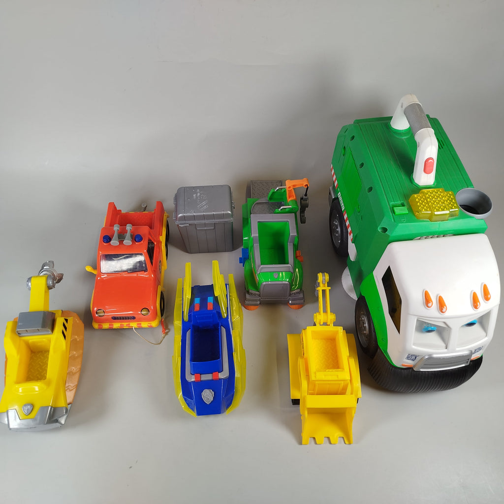 Hol dir das Fahrzeugspielzeug-Set mit Bau- und Einsatzfahrzeugen und bring Action und Abenteuer ins Kinderzimmer! Dieses Set enthält eine Auswahl von Fahrzeugen, darunter ein grüner Lastwagen, ein Bagger, ein Kranwagen und ein Boot. Jedes Fahrzeug ist detailreich gestaltet und ideal für fantasievolle Rollenspiele. Gib diesem Spielzeug ein neues Zuhause und erleben Sie strahlende Kinderaugen! Alle Fahrzeuge sind aus robustem Kunststoff gefertigt und resistent gegen intensives Spielen. Maße und zusätzliche Verpackungsdetails sind nicht angegeben, da die Fahrzeuge lose geliefert werden. Zustand: Gebraucht, mit möglichen Gebrauchsspuren, bitte Fotos beachten. Hinweis: Nicht für Kinder unter 3 Jahren geeignet, da Kleinteile verschluckt werden können, Erstickungsgefahr!