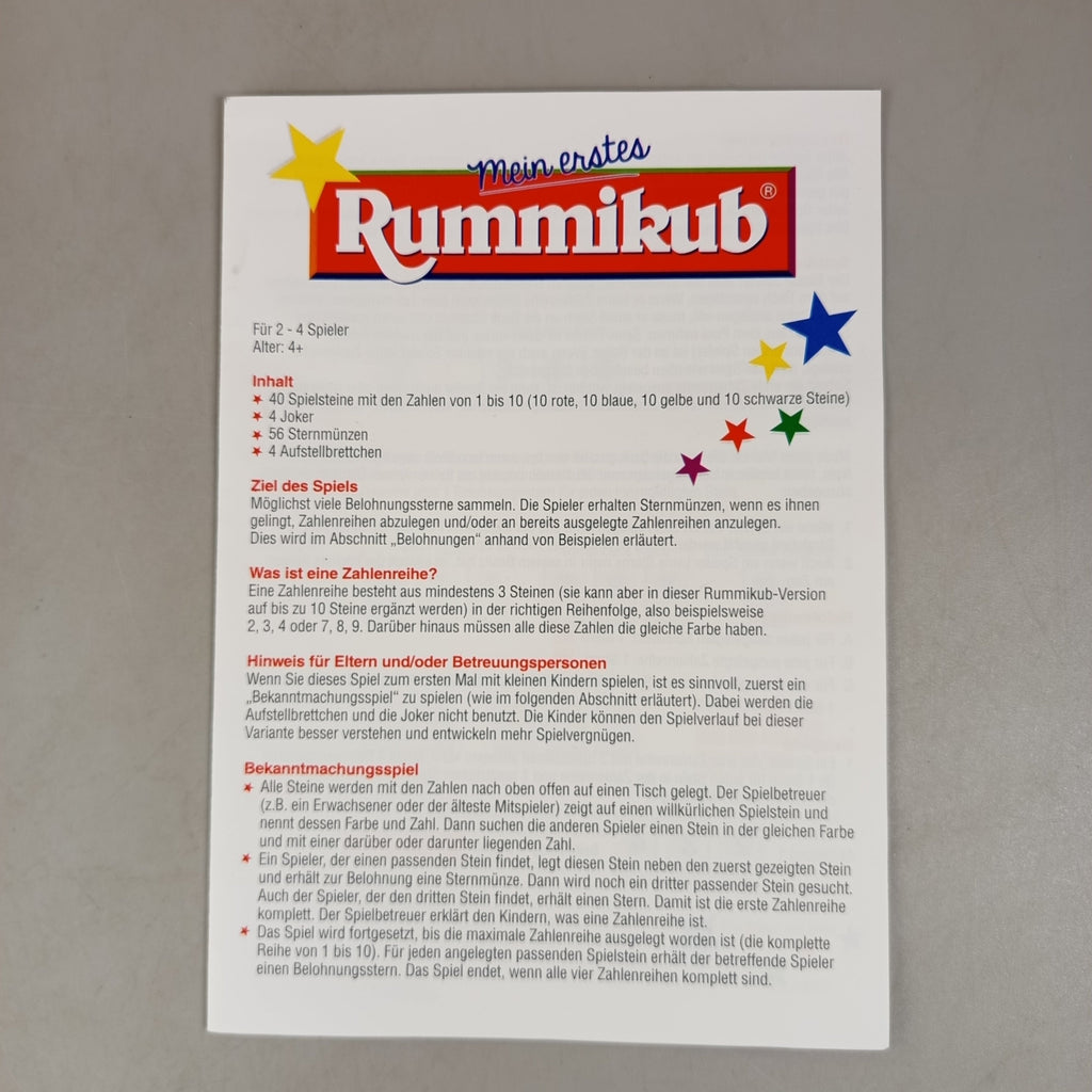 Jumbo Spiele Mein erstes Rummikub – 03990 ist ein Brettspiel für Kinder, das dem klassischen Rummikub angepasst wurde. Ziel ist es, farbige Zahlensteine auf Aufstellbrettern zu kombinieren und Sternmünzen als Belohnung zu sammeln. Das Spiel fördert Konzentration, Zahlenverständnis und das Erkennen von Farben sowie Reihenfolgen. Altersempfehlung: 3–5 Jahre. Achtung: Nicht für Kinder unter 3 Jahren geeignet, Erstickungsgefahr aufgrund verschluckbarer Kleinteile.