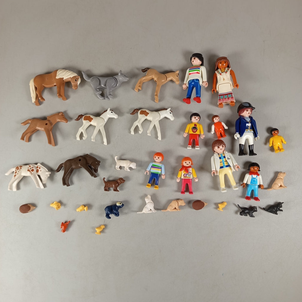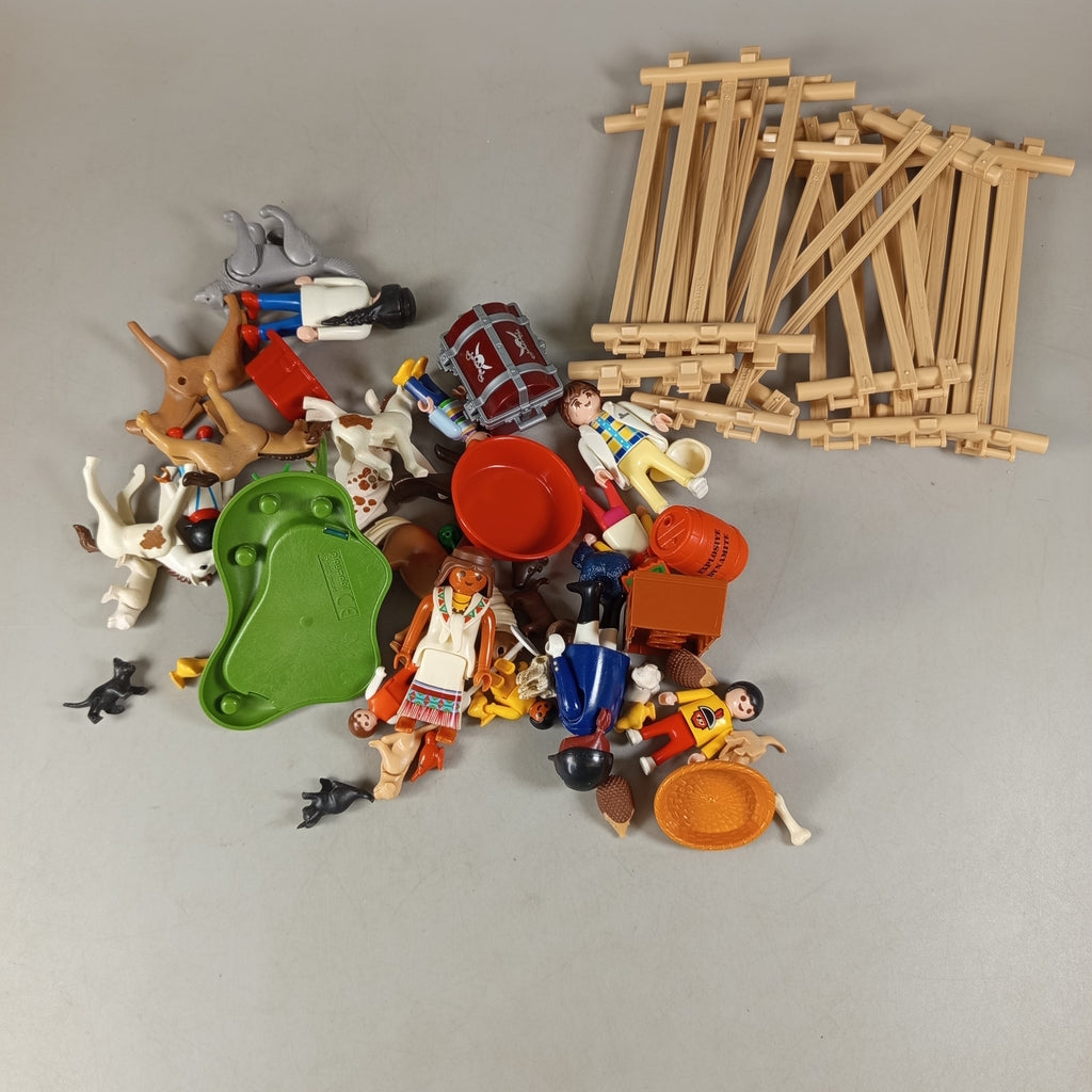 Hol dir das umfangreiche Playmobil Figuren- und Tier-Set mit vielen Zubehörteilen für spannende Rollenspiele. Enthalten sind 12 Figuren, 19 Tiere sowie zahlreiche Accessoires wie Zäune, Fässer, Truhen und ein Teich. Ideal für kreative Spielwelten und fantasievolle Abenteuer. Die Vollständigkeit konnte nicht überprüft werden. Das Set befindet sich in einem sehr guten gebrauchten Zustand. Verpackung fehlt. Hinweis: Enthält Kleinteile, nicht geeignet für Kinder unter 3 Jahren.