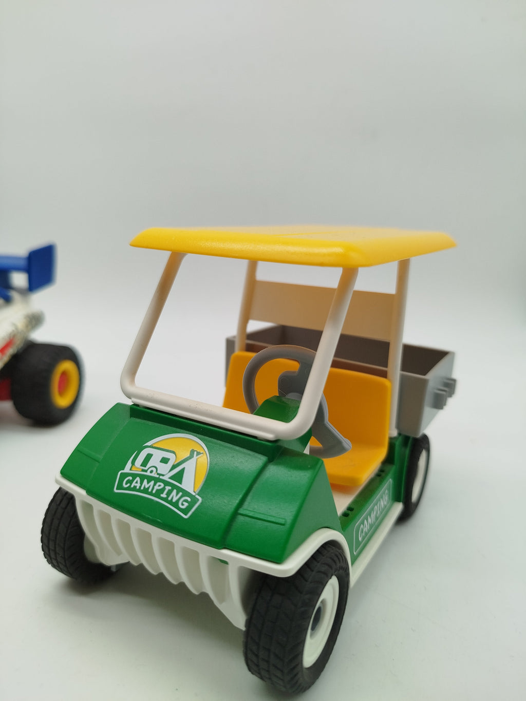 Dieses Fahrzeugset von Playmobil mit Offroad- und Camping-Thema beinhaltet einen grünen Off-Road Jeep mit Camping-Dekor, einen weißen Racing Buggy mit Actionreifen und Fahrerfigur sowie einen grünen Golfwagen für flexible Erkundungen. Neben den drei Fahrzeugen sind viele Werkstatt-Accessoires enthalten. Das Set ist in einem sehr guten, gebrauchten Zustand. Ohne Originalverpackung. Sicherheitshinweis: Nicht für Kinder unter 3 Jahren geeignet, aufgrund verschluckbarer Kleinteile.