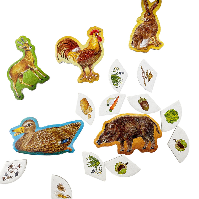 Legespiel zu beliebten Tieren, ihren Lebensräumen und ihr Futter.