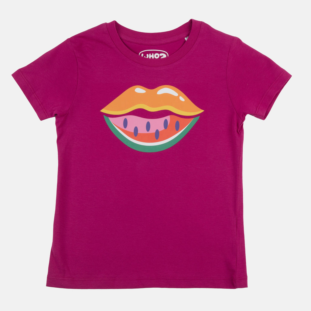 Das wird uns nicht zu bunt! Das weiche T-Shirt im fröhlichen Beerenton macht gute Laune. Bei dem Anblick der Melon Lips kommen direkt Erinnerungen an unbeschwerte Sommertage zurück.