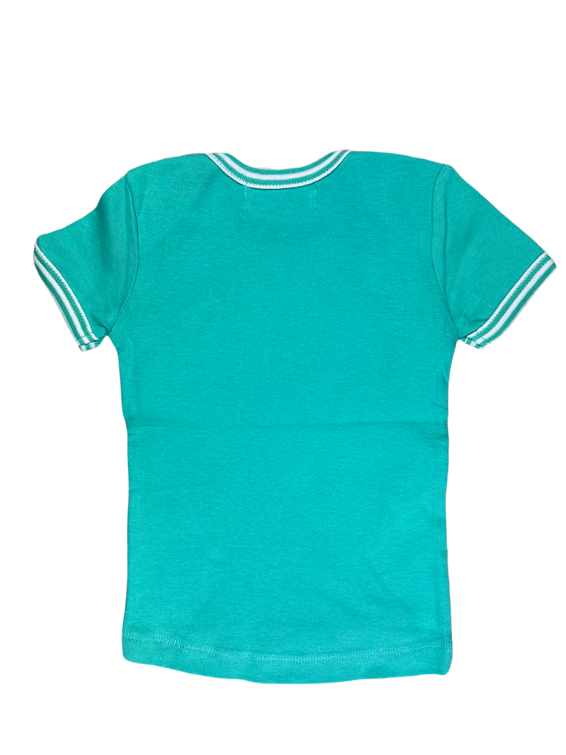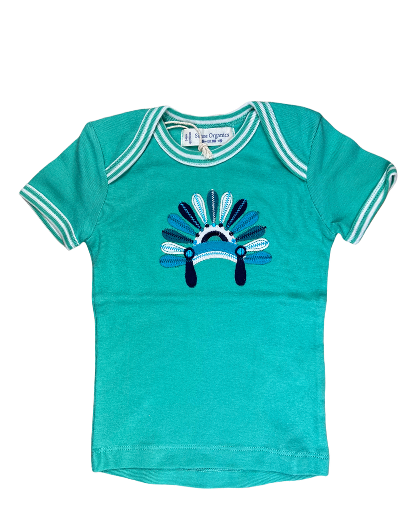 Gestreiftes T-Shirt mit Applikation von Sense Organics.