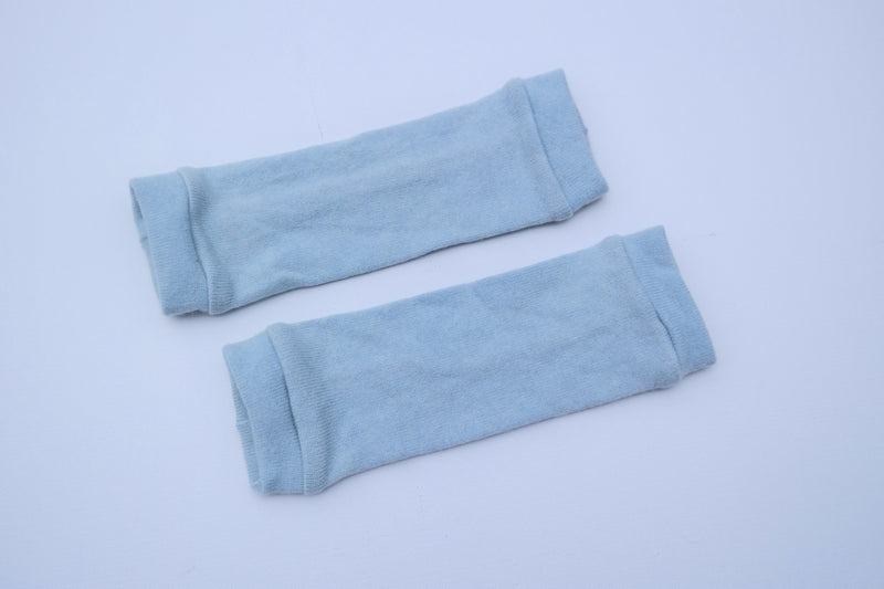 Durch Upcycling rettet Jawoll Baby das wertvolle Material Wolle und macht es wieder nutzbar, hier als wärmende Stulpen für Herbst und Winter.