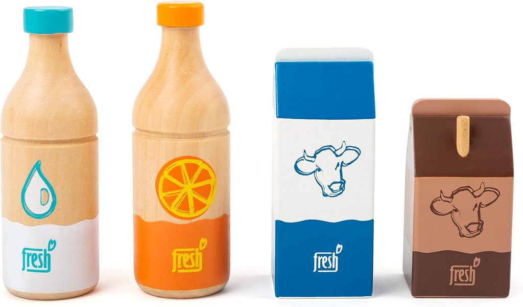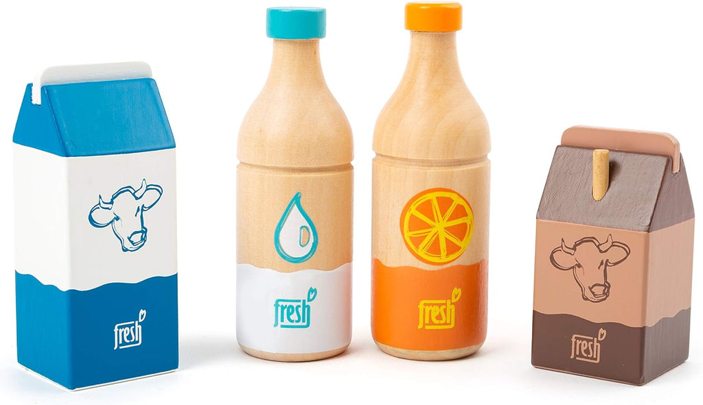 - Die niedlichen Getränke O-Saft, Wasser, große Milchtüte und kleine Kakaotüte laden zum Rollenspiel ein und lassen der Kreativität der Kinder freien Lauf