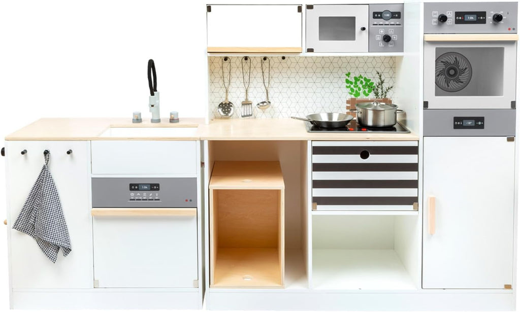 - Die Kinderküche kann als Winkelküche, als Küchenzeile oder als Küche mit Arbeitsinsel aufgebaut werden