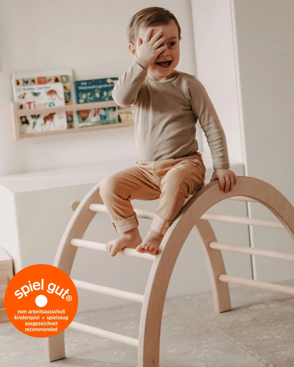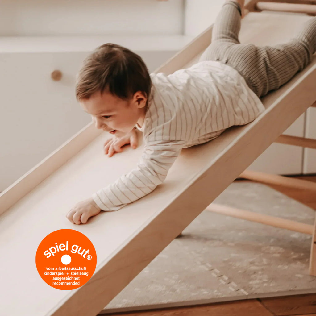 Ob als Wippe, Klettergerät oder kuscheliges Versteck – der Frechling® Kletterbogen S ist ein vielseitiger Begleiter für den Alltag mit Kleinkind. Er fördert Balance, Koordination und Fantasie und ist durch seine kompakte Größe ideal für drinnen und draußen geeignet. Die Frechling® Rutsche sorgt zusätzlich für strahlende Kinderaugen und aktive Momente im Alltag. Und das Frechling® Lenkrad macht dieses Set erst perfekt für stundenlanges Rollenspiel.