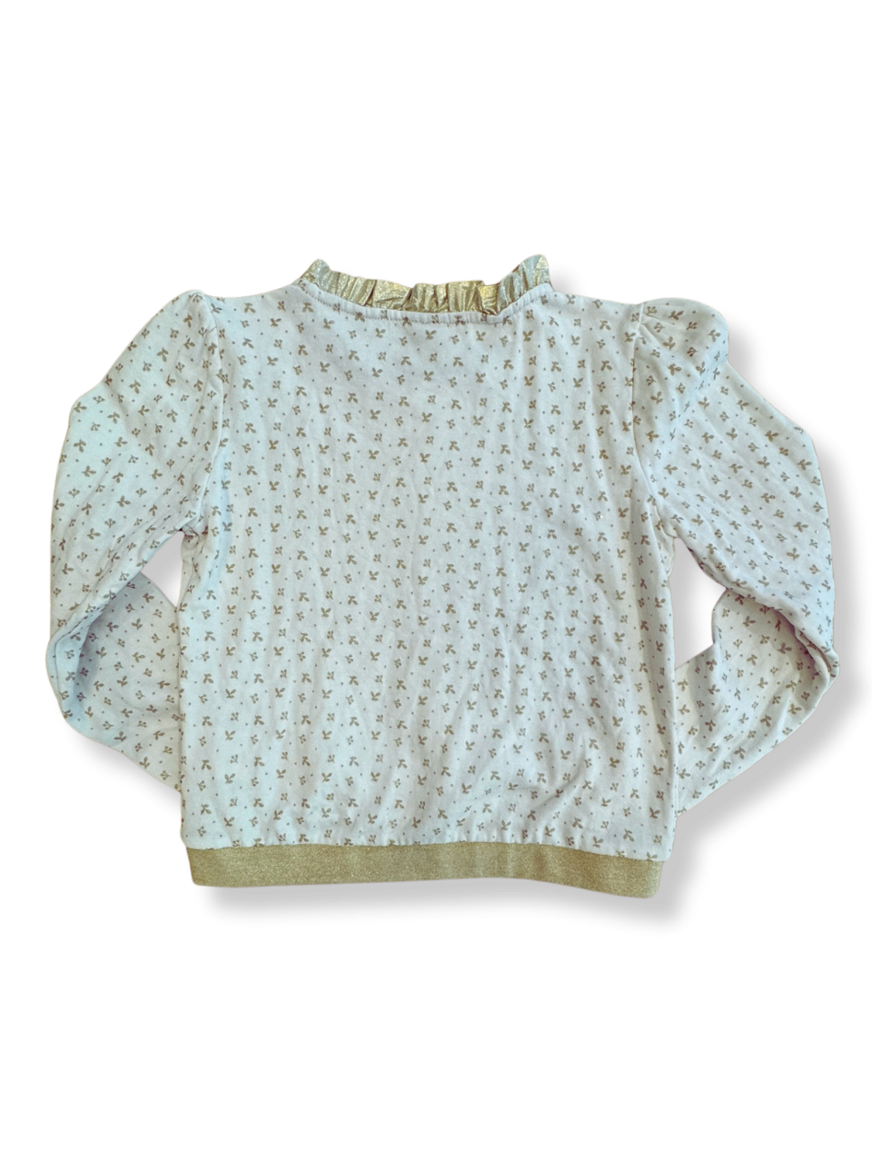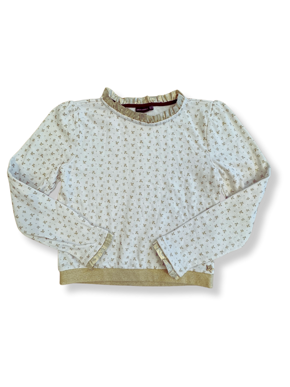 Ein festlicher Pullover mit goldenem Blumenmuster. Das zarte Design macht ihn vielseitig kombinierbar. Das weiche Material sorgt für angenehmen Tragekomfort.