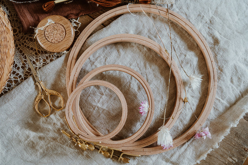 Um sich das Sticken zu erleichtern, ist der Stickrahmen zum Einspannen der Stickarbeit immer eine gute Wahl.