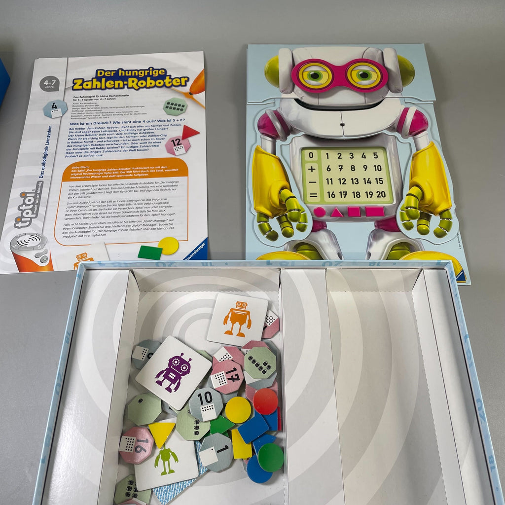 Hol dir das fesselnde tiptoi Brettspiel-Set von Ravensburger für spannende Lern- und Spielmomente im Kinderzimmer! Dieses Set enthält drei spannende Spiele: 'Die monsterstarke Musikschule', 'Der hungrige Zahlen-Roboter' und 'Zahleninsel' , die alle liebevoll gestaltet sind, um Kinder von 4 bis 7 Jahren zu begeistern. Die Spiele fördern sowohl musikalische, mathematische als auch kognitive Fähigkeiten mit interaktiven Inhalten. Gib diesem Spielzeug ein neues Zuhause und erlebe, wie es Kinderaugen zum Strahlen bringt! Hinweis: Die Vollständigkeit kann nicht garantiert werden, aber das Set umfasst zahlreiche Spielkomponenten und Anleitungen. Sicherheitshinweis: Nicht geeignet für Kinder unter 3 Jahren wegen verschluckbarer Kleinteile.