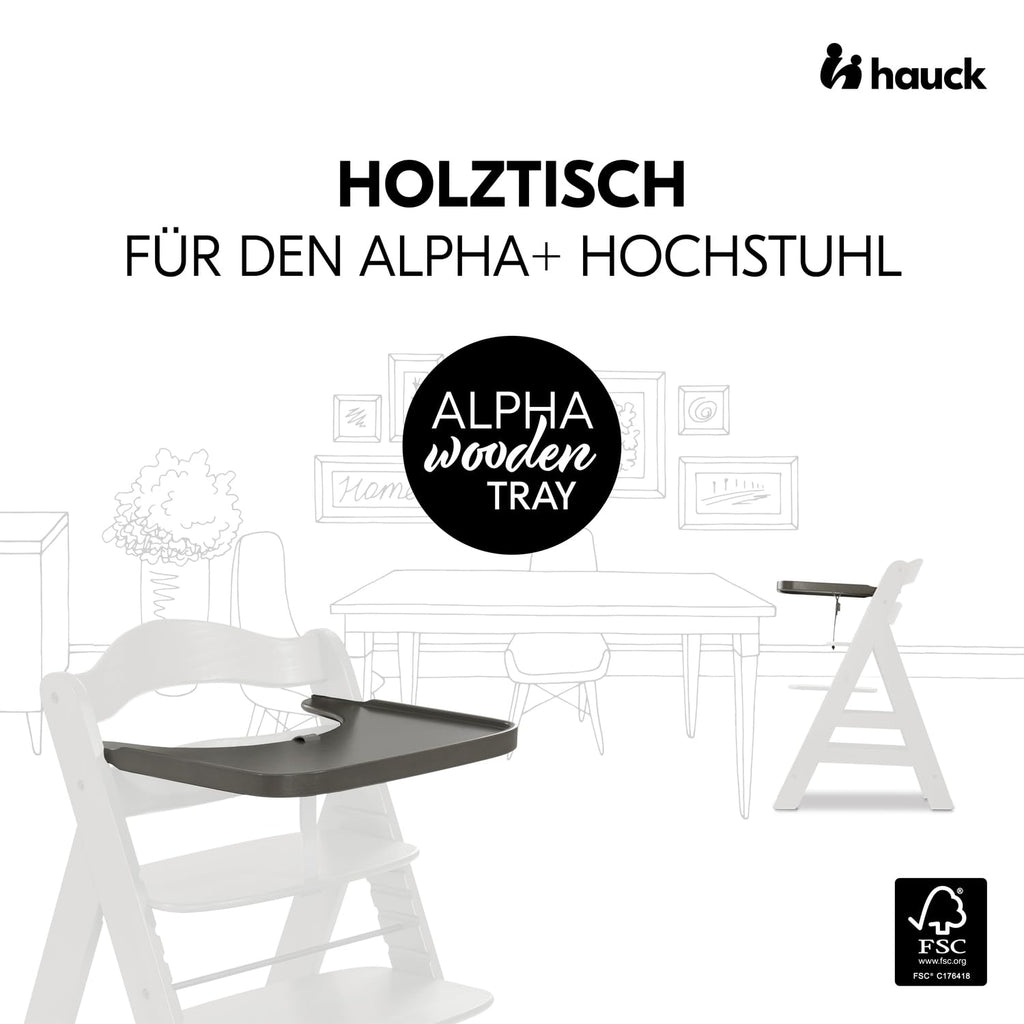 Holz-Essbrett für deinen hauck Alpha+ oder Beta+ HolzhochstuhlAuf dem Holzbrett hat dein Kind viel Platz zum Essen und Spielen. Es lädt neugierige Kinderhände zum Entdecken und Ausprobieren ein – so wird die Eigenständigkeit und Entwicklung deines Kleinkindes gefördert. Und du hast einen praktischen Alltagshelfer für dein Kind zwischen 6 und 36 Monaten. Dank erhöhtem Rand fällt so leicht auch nichts herunter!Nachhaltiges, langlebiges DesignDas Alpha Wooden Tray ist aus robustem, FSC®-zertifiziertem Buchenholz gefertigt – genauso wie der hauck Hochstuhl. Das Holz stammt aus nachhaltig bewirtschafteten Wäldern, welche zum Schutz von Tieren und Pflanzen beitragen. Das Essbrett wird anstelle des Schutzbügels am hauck Treppenhochstuhl befestigt und ist dort fest verankert.Kompatibel mit weiterem ZubehörIm Alltag muss der Hochstuhl so einiges aushalten. Daher empfehlen wir eine Silikonauflage. Zudem ist das Essbrett auch mit den hauck Gurtsystemen, Sitzverkleinerern, Sitzkissen sowie Aufbewahrungsboxen kompatibel. So genießt ihr die maximale Flexibilität des Hochstuhls.