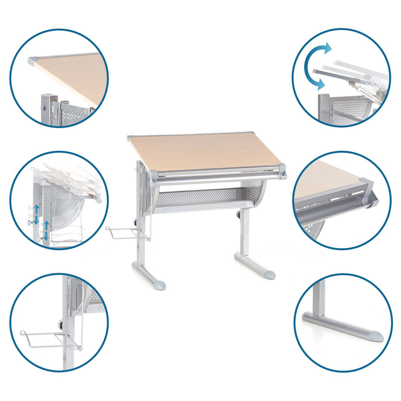 - Kinder- und Jugendschreibtisch mit robuster Tischplatte (Stärke: 20 mm) mit abgerundeten Kanten - einfach abwischbar