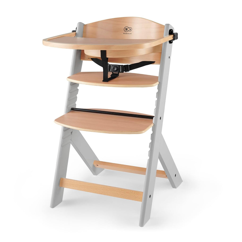 Sicherheit: Der Dreipunktsicherheitsgurt im Hochstuhl (Möglichkeit der Abnahme) und ENOCKs robuste Konstruktion – es wurde nur Buchenmassivholz und hochwertiges Sperrholz verwendet. Zusätzlich ein Sicherheitsbügel im Stuhl für ältere Kinder