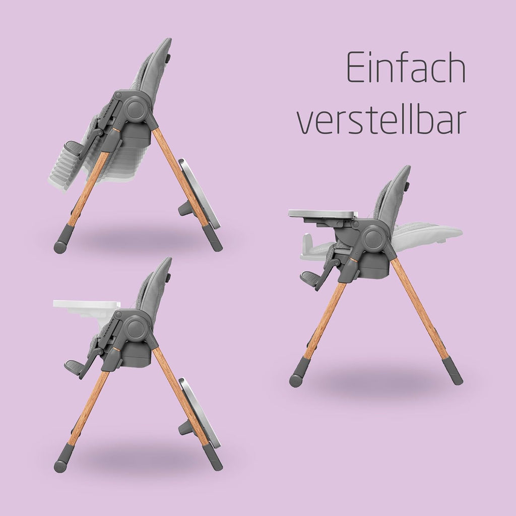 Der Kinderhochstuhl ist so konzipiert, dass er sich so sehr verändert wie Ihr Kleines. In der weichen, gepolsterten Einlage der Babyschale wird sich Ihr Neugeborenes wohlfühlen. Der Hochstuhl lässt sich mit seinen 5 Liegepositionen, 9 Höhenstufen, 4 Tablettoptionen und 4 Beinstützenpositionen vollständig verstellen, damit Ihr Kleines in jeder Wachstumsphase bequem am Tisch sitzen kann.Benutzerfreundlich