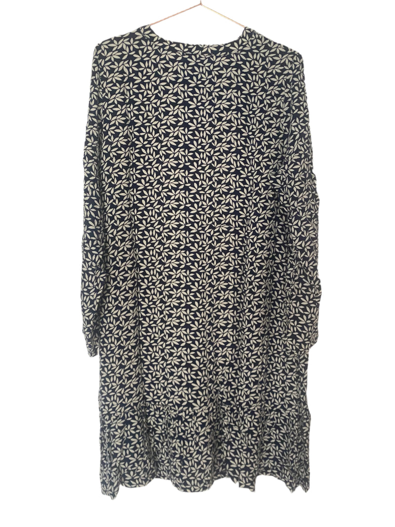 Schönes Kleid aus Viskose mit kleiner dezenter Knopfleiste, in der Mitte viel Platz für den Bauch, kleine Gummiraff an den Ärmeln. Für zehn Euro wirklich ein unglaubliches Schnäppchen.