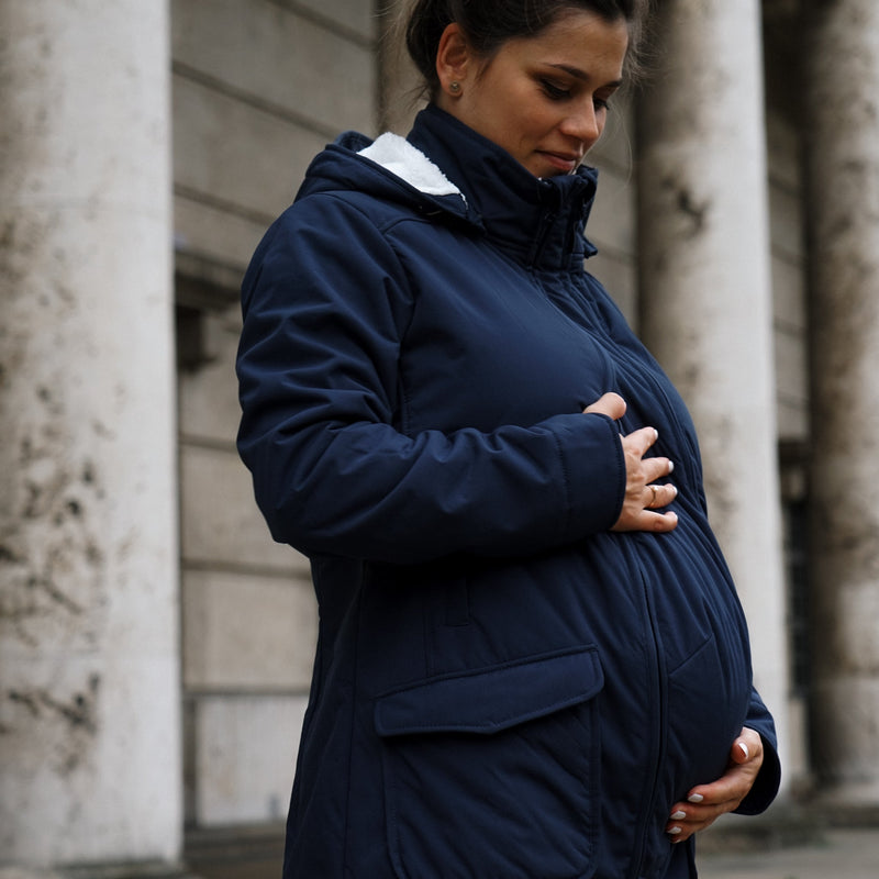 Die flauschige Umstands- und Tragejacke aus Softshell mit kuschelig weicher Fütterung für jedes Wetter. Sie bringt Dich und Dein Baby warm und trocken durch jedes Outdoor Abenteuer. Zwei weich gefütterte Taschen auf Taillenhöhe ergänzen die großen. aufgesetzten Taschen. laden ein zum Händewärmen und sind perfekt platziert. um mit deinem Baby in der Jacke zu kuscheln. Zum Vorne und Hinten tragen konzipiert.