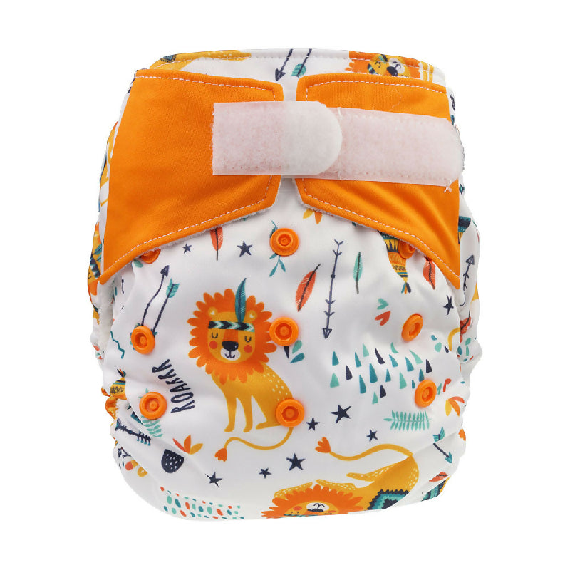 sehr schlanke Ein-Größen-All-in-one mit Bambusfutter. Die Windel ist mit nahtfreien Beinabschlüssen und einem elastischen Auslaufschutz im Inneren der Windel ausgestattet. Beides minimiert hochziehende Feuchtigkeit und bietet den bestmöglichen Auslaufschutz. Nahtfreie Beinabschlüsse bedingen aber einen zusätzlichen Arbeitsschritt beim Wickeln, da man konsequent hervorstehendes Futter unter den wasserdichten Stoff schieben muss. Dieser verschwindet nicht automatisch unter dem PUL. Der doppelte Auslaufschutz im Inneren der Windel ermöglicht besseren Auslaufschutz beim Schlafen und Laufen. Der verdeckt gearbeitete Mikrofaserkern bietet trotz der schlanken Passform eine super Saugleistung.