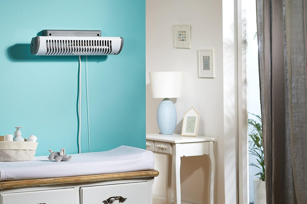 Produktbeschreibung Die Heizstrahler von reer schützen Ihr Baby vor Unterkühlung, Erkältungen und anderen Krankheiten. Neben dem Wickeltisch aufgestellt oder darüber aufgehängt sind sie der ideale Wärmestrahler beim Wickeln oder nach dem Baden, denn Babys können ihre Körpertemperatur noch nicht regulieren und kühlen schon bei normaler Zimmertemperatur schnell aus.Die Wickeltisch-Heizstrahler der EasyHeat-Serie von reer stechen durch ihre besonders kompakte Bauweise hervor. Mit 46cm Breite sorgen sie für einen ausreichend großen Wärmekorridor, nehmen aber nicht zu viel Raum ein und dominieren das Kinderzimmer nicht. Das macht sie zur idealen Wahl für kleine Räume. Ihre 500 Watt Leistung sorgen für Wohlgefühl bei wenig Verbrauch, arbeiten energie-effizient und sparsam.Dieses Modell der EasyHeat-Serie von reer Heizstrahlern befestigen Sie mit Schrauben an der Wand, so ist es sicher vor dem Zugriff von Babyhänden. Die Bedienung erfolgt bequem über einen Zugschalter, der den integrierten zehnminütigen Timer in Betrieb setzt. Set enthält: 1 Stück Wickeltischwärmestrahler "EasyHeat"