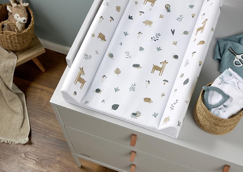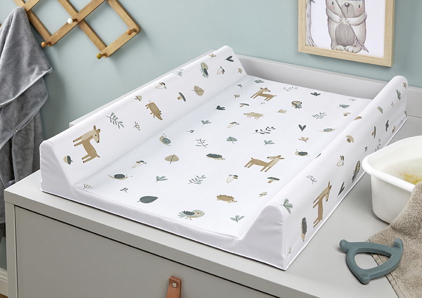 Rotho Babydesign Wickelauflage Keil 50 x 70 cm - wickelauflage - wickeltischauflage - abwaschbar - wickelmatte - wasserdicht - Motiv Waldtiere