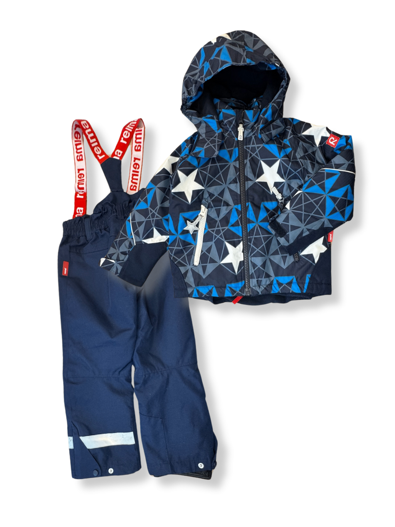 REIMA - Diese Ski-Kombi von Reima bietet hervorragenden Schutz vor Wind und Wetter und vereint Funktionalität mit Stil. Die geometrischen Muster in Blau und Schwarz verleihen einem klassischen Design einen modernen Touch. Die wieche, herausnehmbare Innenjacke aus Fleece sorgt für zusätzliche Wärme und Komfort, kann aber auch separat getragen werden. Ideal für kühle Tage und Outdoor-Abenteuer.