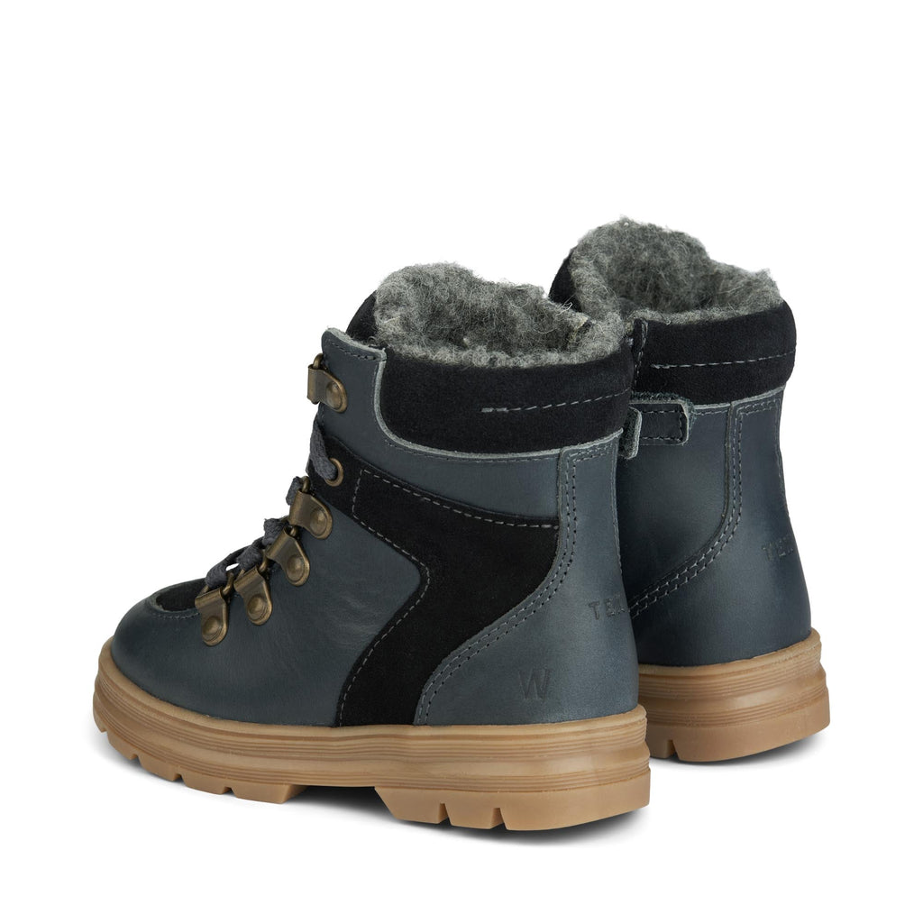 F222 60% Chrom- & Metallfreies Leder / 40% WildlederHergestellt in Portugal22 AutumnWheat Footwear The model is small in size, we recommend that you go up a size if you are in doubt. Cool winter boots with laces and a classic hiking boot look for the junior child. - Wool lining - Tex membrane - Laces - Zipper on the insideWheat’s winter boots have a comfortable and warm wool lining and are easy for your child to get in with a simple closure. The boots have a Tex membrane that is 100% breathable and waterproof, which is practical for the autumn and winter seasons, as this keeps the little feet both warm and dry. These winter boots are designed with inspiration from hiking boots with laces and a practical zipper on the inside of the boots that make it easy for your child to put them on. The boots are made of chrome and metal free tanned leather that is breathable and sweat absorbent to ensure good comfort for your child. This means that the boots do not contain harmful metals. The material is very durable and gets a wonderful patina over time. As a lovely detail, the boots have suede details on the sides and at the edge around the ankle. The boots have wool lining, as well as a removable insole that is made of latex and covered with wool, which is why these boots are perfect as winter boots, as they are both supportive and warm. Latex is a natural product that is breathable and flexible with a trampoline effect for more comfortable steps. The boots have recycled TR rubber outsoles with great traction. It is normal in size with a firm grip on your child's foot. Recommended allowance for growth: 1-1,5 cmInner measurement:Size 24 = 15,7 cmSize 25 = 16,4 cmSize 26 = 17,0 cmSize 27 = 17,6 cmSize 28 = 18,2 cmSize 29 = 18,9 cmSize 30 = 19,5 cmSize 31 = 20,1 cmSize 32 = 20,7 cmSize 33 = 21,3 cmSize 34 = 22,0 cmSize 35 = 22,7 cmComposition:Outer material: Chrome and metal free tanned leather and suedeLining: 100% Wool with Tex membraneInsole: Soft latex insole lined with 100% woolOutsole: Recycled TR rubber