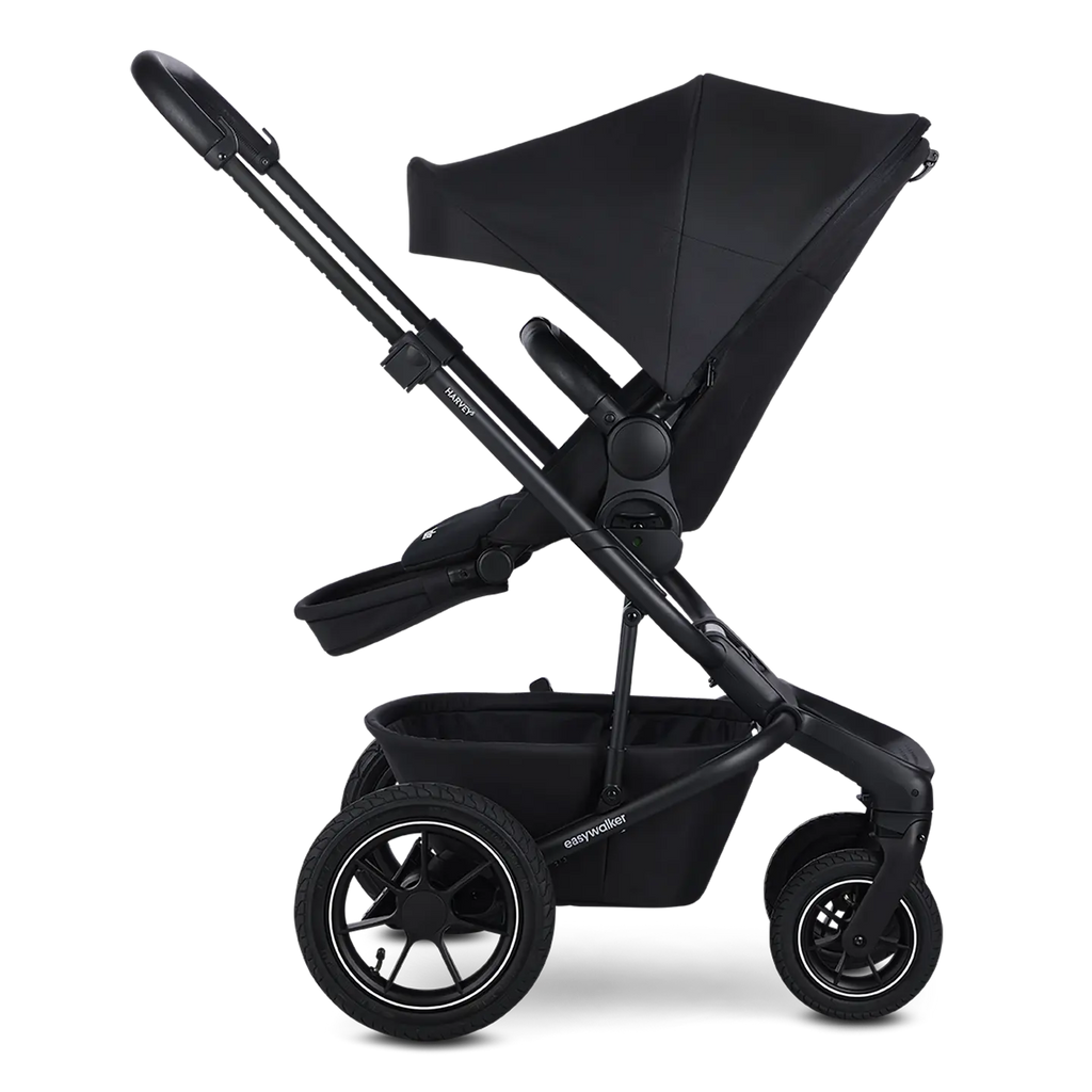 Bist du auf der Suche nach einem Kinderwagen, der einfach zu bedienen, multifunktional und bequem ist? Einen, der super kompakt ist, sich leicht zusammenfalten lässt, traumhaft fährt, deinen Nachwuchs auf seiner Reise durchs Leben bei Laune hält und nur 11 Kilo wiegt? Dann hast du ihn gefunden! Begrüße den Easywalker Harvey⁵ Air Midnight Black, der Bestseller, der dich überall im Leben hinbringt.