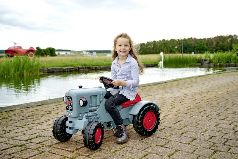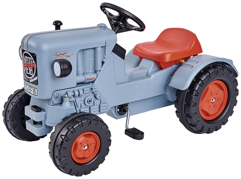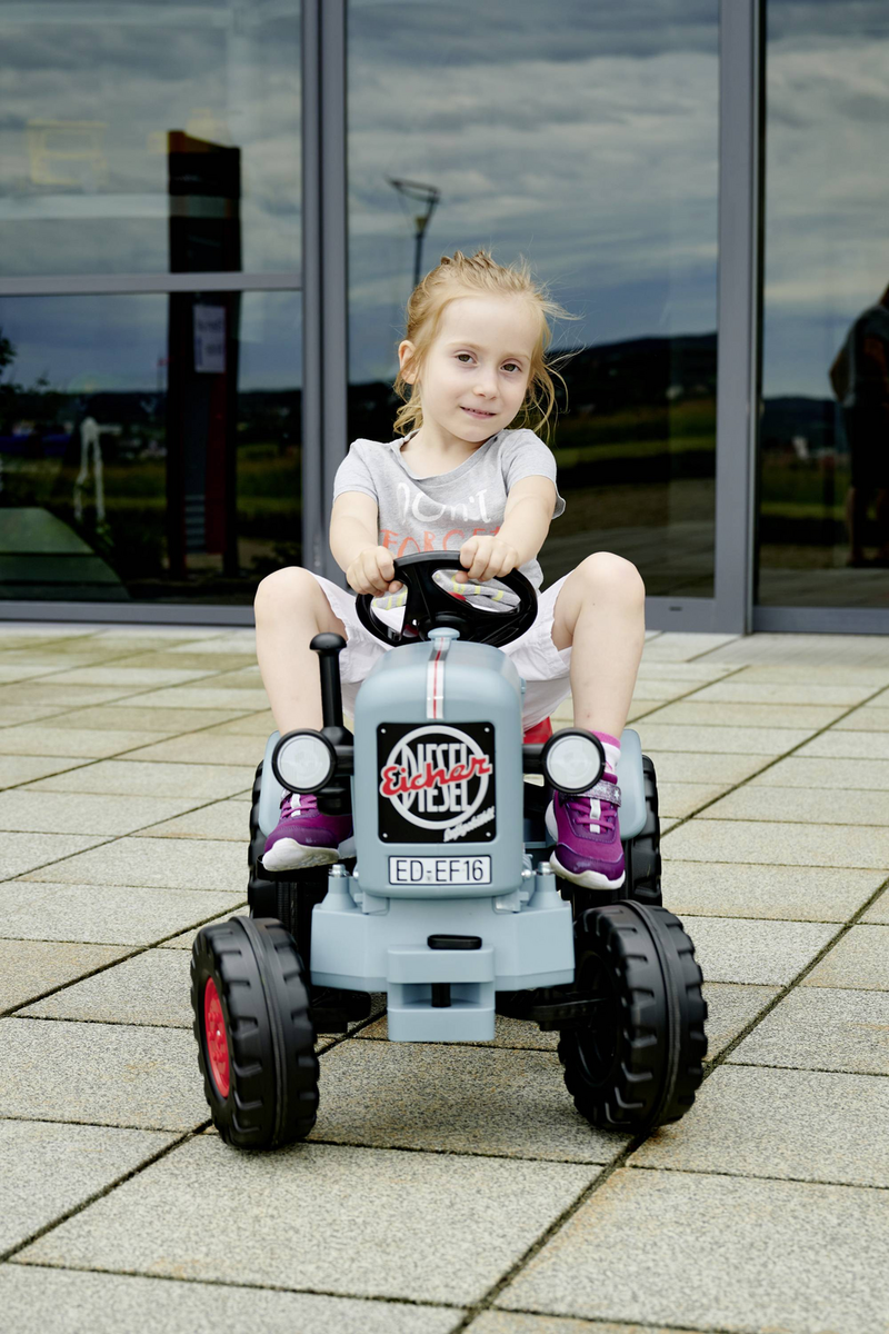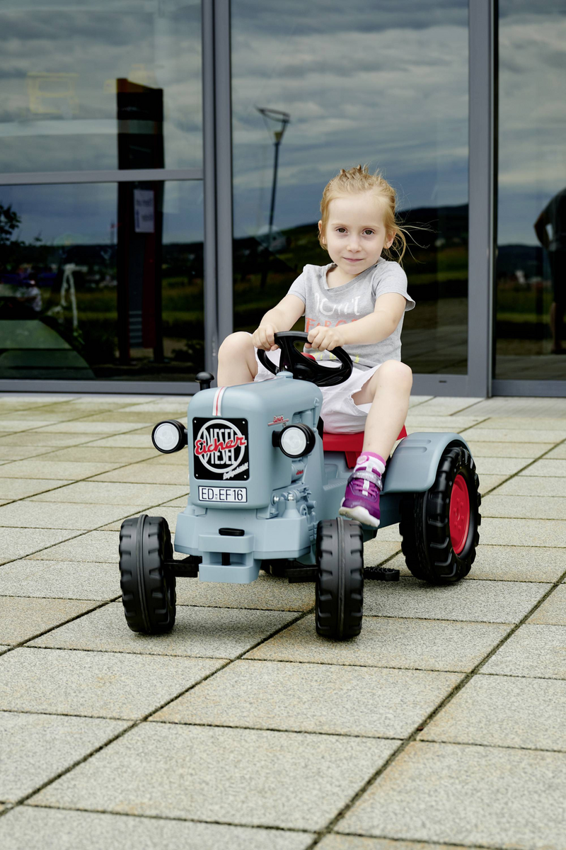In enger Zusammenarbeit mit den Eicher-Freunden entwickelte BIG mit viel Liebe zum Detail den Eicher Diesel ED 16. Sowohl als niedliches Kinderfahrzeug für Kinder ab 3 Jahren als auch in Sammlerkreisen wird dieser Traktor seine Besitzer begeistern. In Bezug auf sein Design steht er den großen Originalen in nichts nach. Und auch in Punkto Ausstattung ist der Eicher Diesel ED 16 für Kinder ein absolutes Highlight. Hohen Fahrkomfort sichern der serienmäßig integrierte Präzisionskettenantrieb, eine Zahnritzellenkung und kindgerechte Pedale. Der Sitz ist in 3 Stufen verstellbar und kann somit auf die Größe des Kindes angepasst werden. Damit wächst der Traktor mit und kann lange gefahren werden.
