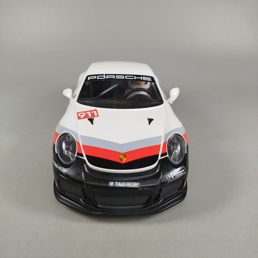 Hol dir den detailreichen Playmobil Porsche 911 GT3 Cup mit Fahrerfigur und authentischer Rennoptik. Das Modell zeigt Porsche-, Mobil 1-, TAG Heuer-, Michelin- und Boss-Logos und ist perfekt für kleine Rennsportfans. Das Set ist vollständig und befindet sich in sehr gutem gebrauchten Zustand. Verpackung fehlt. Hinweis: Enthält Kleinteile, nicht geeignet für Kinder unter 3 Jahren. Gib diesem coolen Rennwagen ein zweites Leben und bring Fahrspaß ins Kinderzimmer!