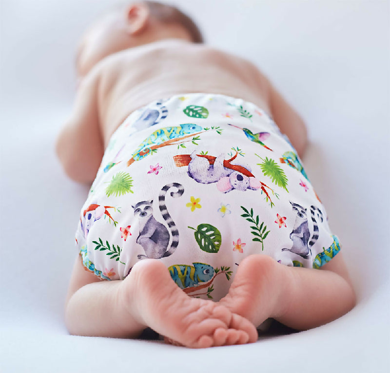 Diese Windel braucht eine zusätzliche Nässeschutzhose (im Paket enthalten).