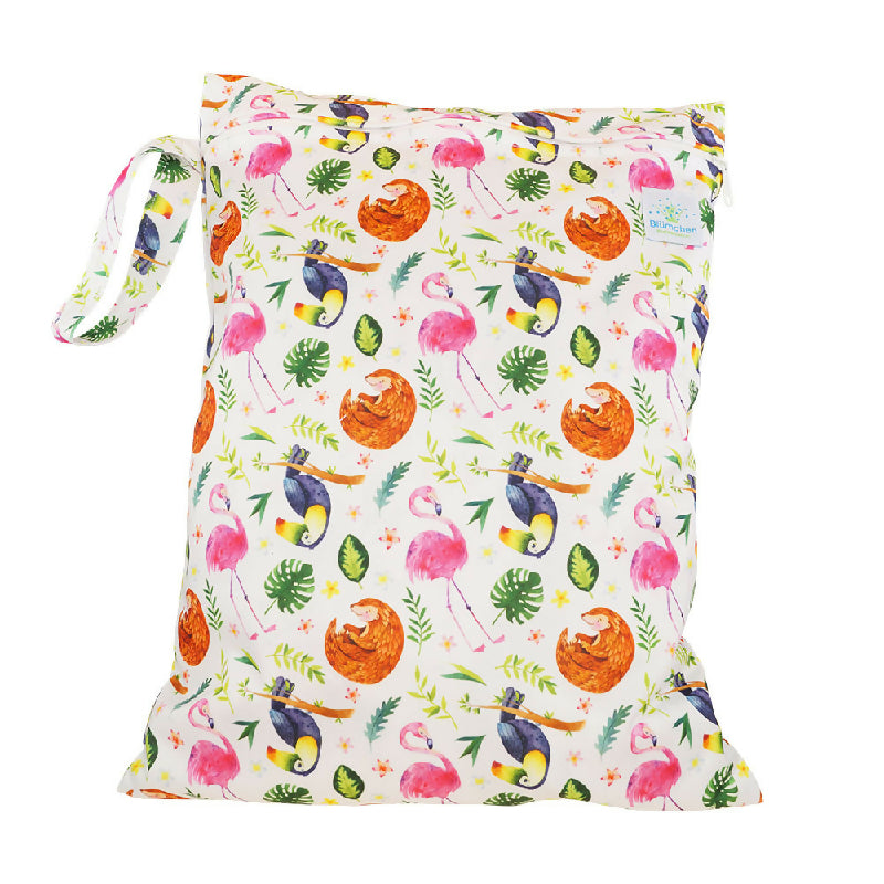 wunderschöne Nasstasche aus wasserdichtem und geruchsdichtem PUL mit Zip-Verschluss. Ersetzt unzählge Plastiktüten und bleibt dauerhaft schön. Maschinenwaschbar und pflegeleicht.