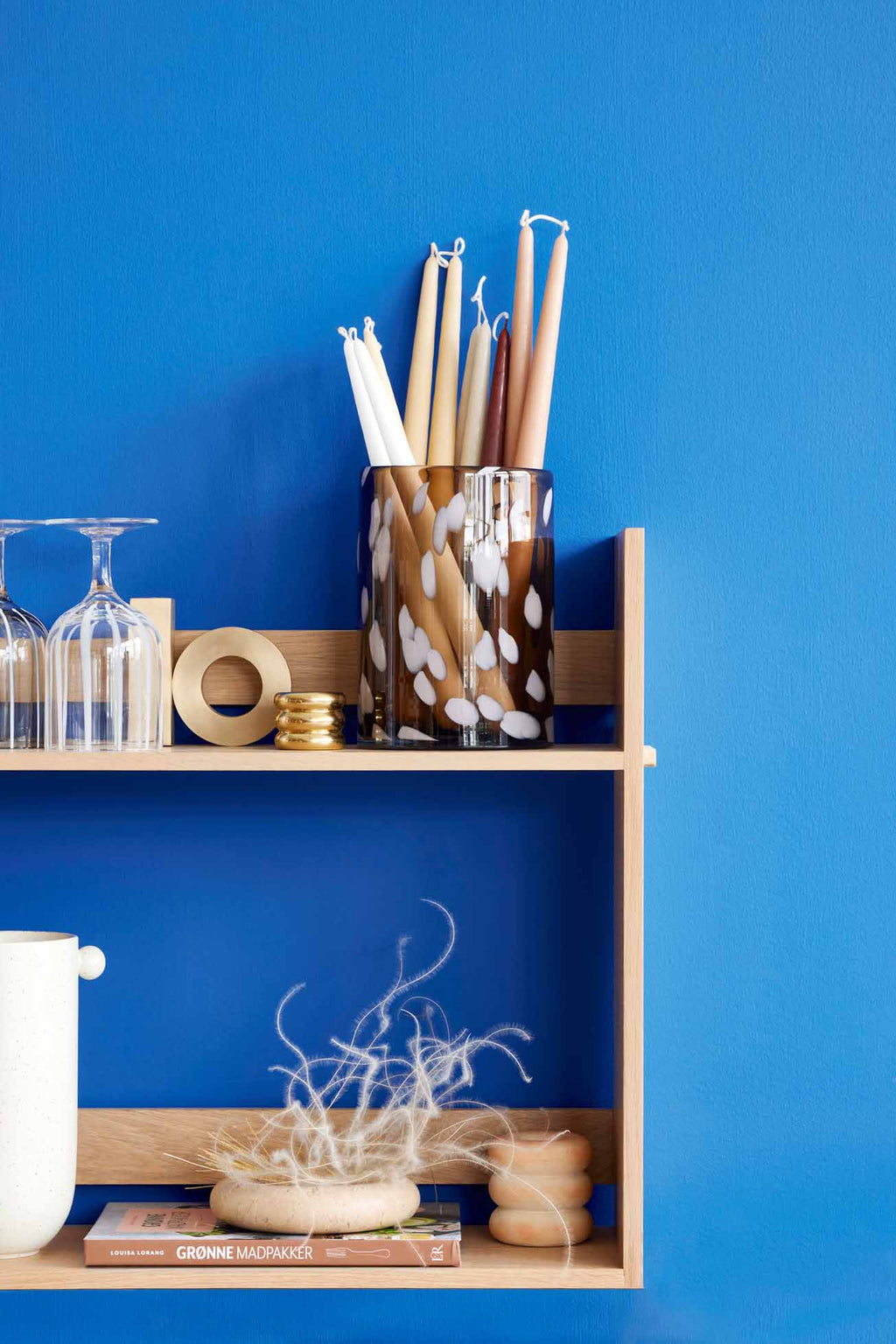 Fall in love with Jali! The glass series Jali is made with cute Colorful details in a simple design with rounded edges, making it a chubby and powerful glass. Jali Hurriane can be used as both a lantern, a vase or for decoration, making it a super versatile piece in your collection. The Jali series is handmade, making every single piece unique, and they will vary in size, shape and design. The name Jali means spot. Style no. L300335 Material: 100% Glass Dimensions: Ø13 x H19 cm