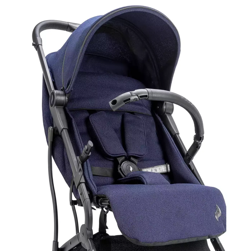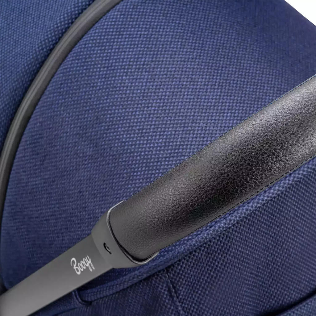 Der Osann Boogy im eleganten Design Indigo ist kompakt, federleicht und mit jeder Menge Komfort-Features ausgestattet! Es werden nur exklusive und hochwertige Stoffe verwendet, die alle UPF 5+ entsprechen. Der Schiebegriff sowie der Schutzbügel sind außerdem mit hochwertigem Kunstleder überzogen. Der Bügel kann beidseitig geöffnet und auf die Seite geklappt werden, was das Ein- und Aussteigen enorm erleichtert. Der wendige Sportwagen punktet vor allem mit seiner einfachen Handhabung, denn das leichte Aluminiumgestell lässt sich in wenigen Sekunden, mit nur einer Bewegung, in ein kleines, handliches Päckchen verwandeln und findet so in jedem Kofferraum problemlos Platz. Zusätzlich zum integrierten Tragegurt ist eine Transporttasche im Lieferumfang enthalten - so ist der Boogy bei Reisen optimal vor Verschmutzung oder Beschädigung geschützt. Die Rückenlehne des Boogy's lässt sich mit einem Zugband individuell verstellen. Die optimierte Beinauflage mit nahtlosem Übergang zur Sitzfläche lässt sich zusätzlich mit einem einfachen Handgriff nach oben stellen und bildet so gemeinsam mit der Rückenlehne eine absolute Liegefläche - so kann sich dein Kind entspannt zurücklehnen. Ein passender Regenschutz sowie Adapter für den Boogy sind praktischerweise ebenfalls bereits im Lieferumfang enthalten. Die Adapter ermöglichen die Verwendung in Kombination mit den gängigsten Babyschalen. So sind aktive Familien flexibel ausgerüstet für unterwegs! Merkmale Vorteile Technische Daten