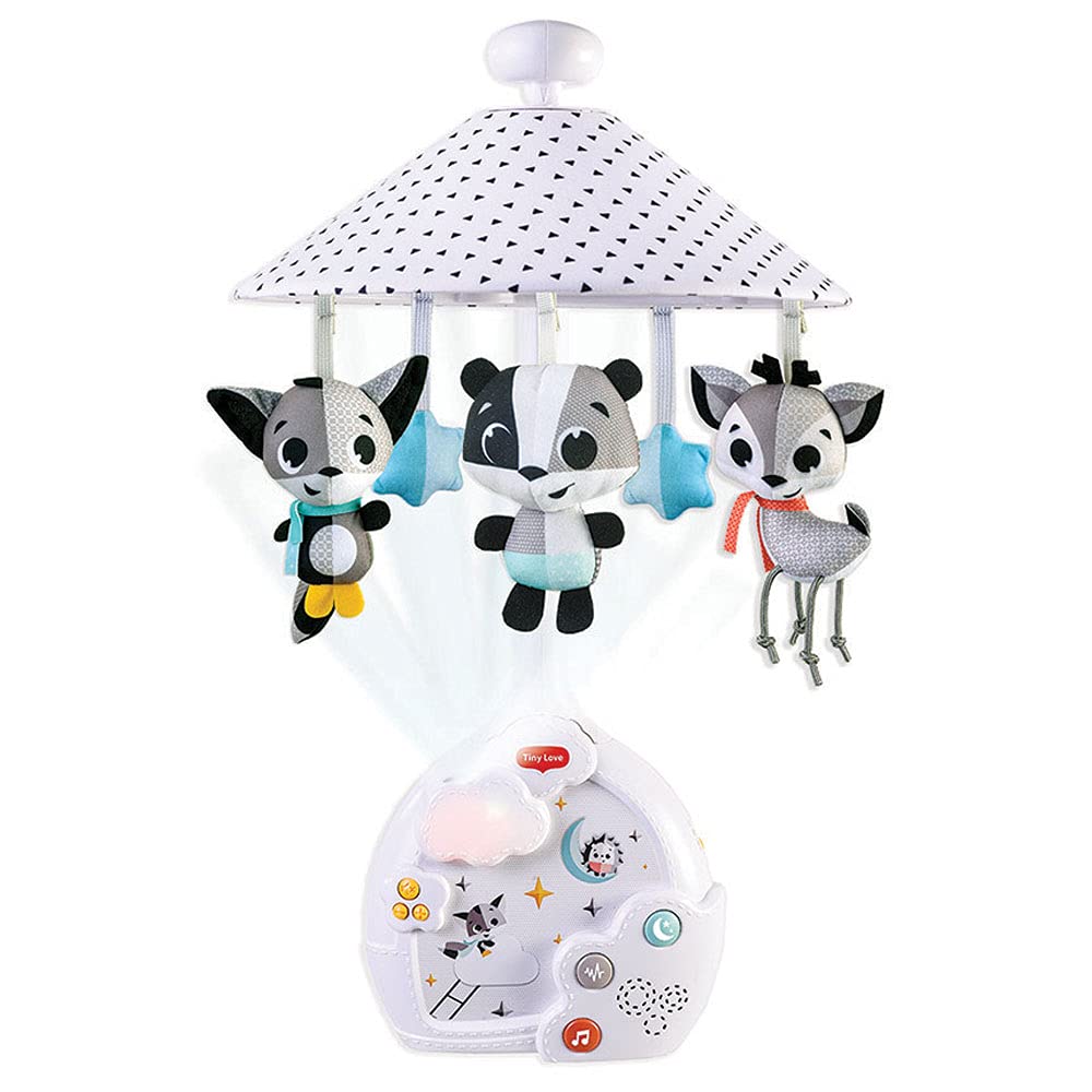 Das Magical Night 3-in-1 Projektor Mobile ist alles in einem: ein Mobile für Kinderbettchen, Baby-Projektor und Nachtlicht und beruhigt Ihr Baby mit bezaubernden Melodien, wenn es Schlafenszeit ist. Das Projektor-Mobile spielt bis zu 30 Minuten lang Musik, ohne sich zu wiederholen (9 verschiedene Melodien), und mit dem Nachtlicht werden wunderschöne Sterne projiziert, die für ruhigen Schlaf ohne Unterbrechung sorgen. Stimulieren Sie die Fantasie Ihres Kindes mit den freundlichen Figuren aus der Magical-Tale-Kollektion auf diesem Baby-Mobile-Projektor, lauschen Sie den bezaubernden Melodien und verwandeln Sie diesen Mobile-Projektor in eine eigenständige Spieluhr, wenn Ihr Kind aus der Mobile-Zeit heraus gewachsen ist. Also noch mehr Vergnügen, wenn es älter wird. Das Tiny Love Magical Night 3-in-1 Projektor Mobile fördert die Entwicklung Ihres Babys und stimuliert die folgenden Entwicklungswunder: Emotionen, Kreativität, Motorik, Sinne, Kognition und Kommunikation. Das Magical Night 3-in-1-Projektor Mobile ist Teil der Magical Tales-Kollektion und führt Ihr Baby in eine magische, gedämpfte Lichterwelt ein.
