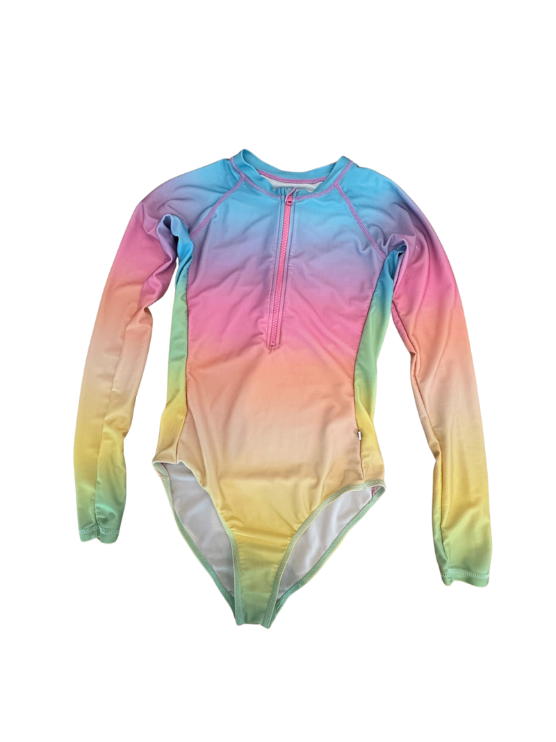 Dieser bunte Schwimmanzug besticht durch sein lebendiges Farbenspiel in Pastelltönen. Das Material aus Polyester sorgt für einen angenehmen Tragekomfort und schnelle Trocknung. Mit praktischem Reißverschluss im Brustbereich eignet es sich ideal für Pool- und Meeresabenteuer.