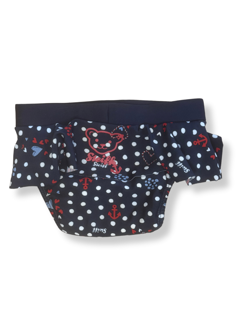 Diese süße Badehose bringt maritime Stimmung mit einem verspielten Design aus roten Ankern und Herzen auf dunkelblauem Grund. Der elastische Bund mit einer eleganten Schleife sorgt für den perfekten Sitz. Hergestellt aus hochwertigem, schnelltrocknendem Polyester, ist sie ideal für spannende Tage am Strand oder im Schwimmbad. Lass die Badesaison beginnen!