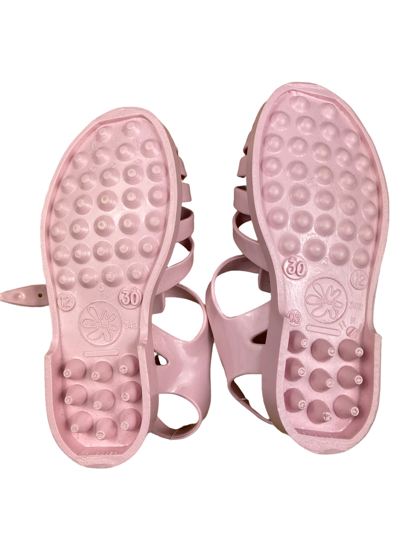 Kein nachhaltiges Label/kein Label mit Textilsiegel. Rosa Badesandalen von Meduse in der Größe 30.